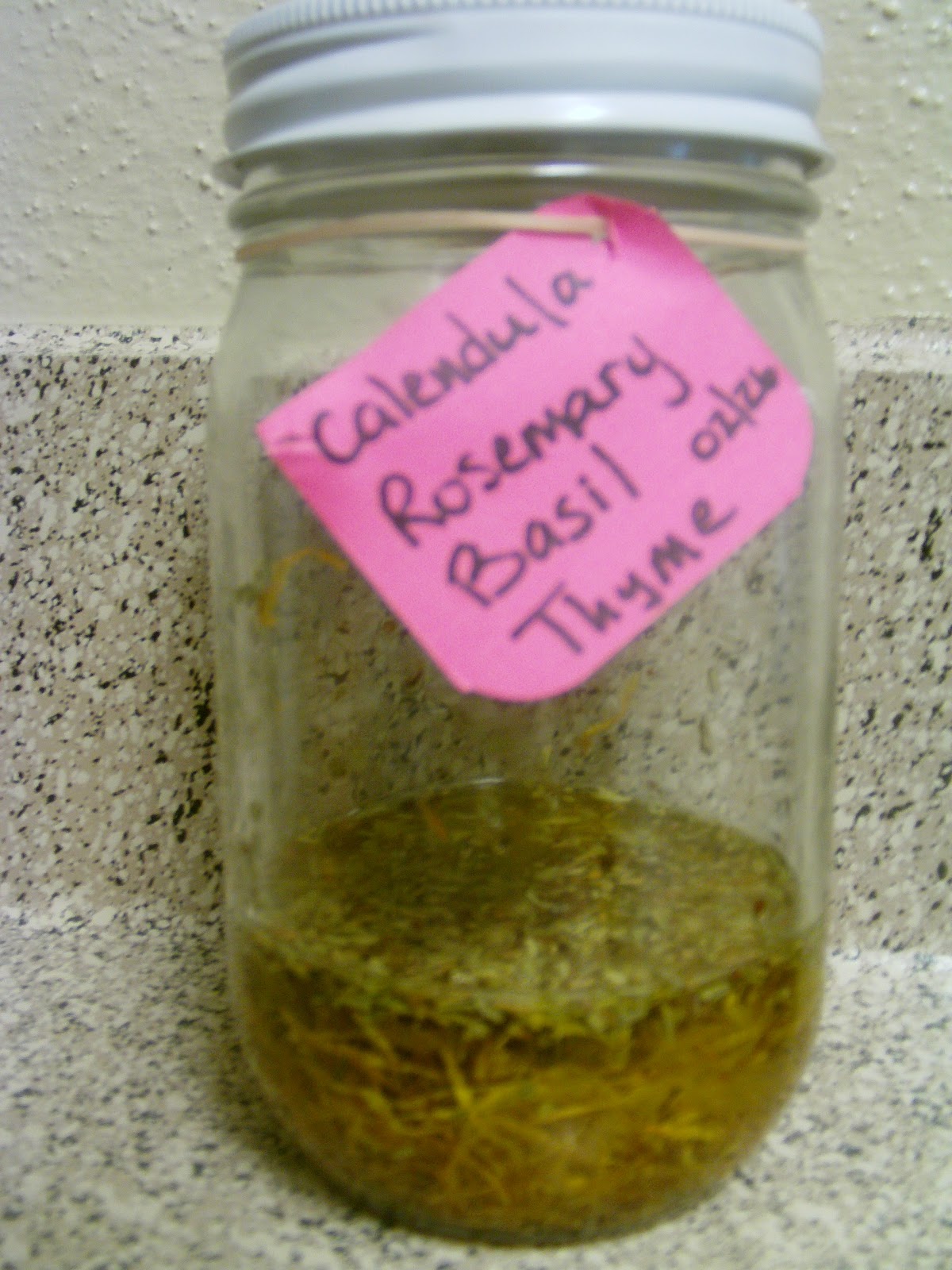 My infusion containing Calendula Flowers, Rosemary. Basil & Thyme.
